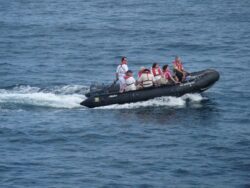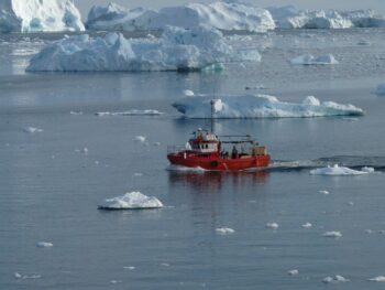 De Paris, il faut tout d’abord rejoindre par avion Copenhague puis emprunter un vol d’Air Greenland à destination de Kangerlussuaq située au nord du cercle polaire et proche la calotte glaciaire. A peine le pied posé sur le sol, on devine que Kangerlussuaq, fut une base militaire américaine jusqu’en 1992. De là, on gagne l’élégant navire de croisière et d’exploration M/s Fram par bateau pneumatique polaire stationné dans le fjord. Le temps est venu de se poser dans sa cabine, de dîner et l’appareillage a lieu en soirée. Confortablement installé à bord du M/s Fram, chaque passager tente de s’imprégner de l’atmosphère du Groenland, un monde au-delà de tout ce que l’on imagine. Une contrée à la fois puissante et fragile.