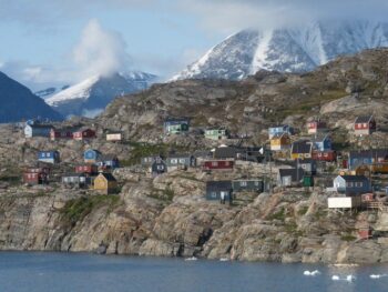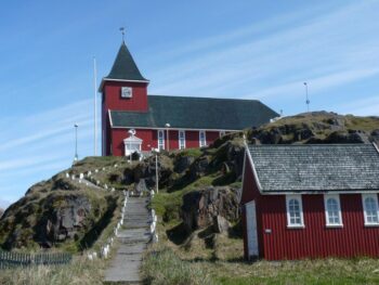 Le temps de prendre ses repères à bord et, le lendemain matin se dessine Sisimiut, une la seconde ville de l’île -peuplée de 6 000 habitants- blottie au pied d’un grand rocher au nord du Cercle Polaire. Fondé en 1756, le port de Sisimiut fut longtemps un port baleinier et de commerce. Par sa position, 100 km au nord du Cercle polaire, le port est considéré comme le point libre de glaces le plus septentrional du Groenland de l’Ouest. Il s’agit du plus grand centre national de la pêche à la crevette après avoir été un important port d’échanges commerciaux entre le Nord et le Sud. Avec son allure de petit village aux maisons multicolores parfois montées sur pilotis, Sisimiut possède la plus vieille église du pays, l’église bleue de Bethel, qui daterait de 1775. Elle est encore utilisée pour certaines célébrations exceptionnelles, mais les fidèles se réunissent désormais dans l’église rouge. Les passagers arpentent avec plaisir les rues menant à toutes ces curiosités puis regagnent en fin d’après-mdi, le M/s Fram qui reprend la mer.
