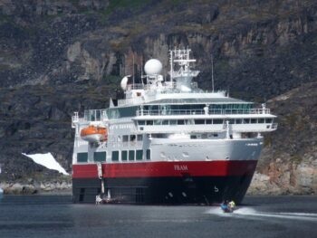 Le M/s Fram, construit en 2007, est sans doute ce qui se fait de mieux en matière de navire d’exploration. Taillé pour les mers extrêmes, il est pourtant d’un confort absolu. Sa décoration, claire et lumineuse, ses dimensions modestes et ses équipements de navigation et d’excursions ultra-modernes en font un navire d’exception. Le bateau le plus moderne de la flotte Hurtigruten. Le M/s Fram spécialement conçu pour la navigation en milieu polaire, avec une classe de glace élevée (1B) dispose de 128 cabines et possède des salles de conférence, des restaurants, l’accès Internet, un magasin de bord, une cafétéria, un bar, ainsi que des jacuzzis, saunas et une salle de fitness. Depuis le magnifique salon panoramique et le pont d’observation, les passagers jouissent d’une vue splendide sur les immenses icebergs et les impressionnants paysages jalonnant la croisière. La plupart des passagers ont vécu un rêve éveillé. En été, au Groenland, quand le thermomètre monte jusqu’à 15 °C, on ressent tous une sensation de chaleur. Mais on retient surtout de cette expérience la rencontre d’un peuple accueillant, et de paysages extraordinaires façonnés par la glace. Une croisière d’exploration au Groenland assure autant de paysages grandioses que d’émotions.