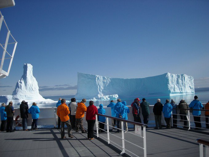 Direction Qeqertarsuaq, la seule ville de l’île volcanique de Disko. De bon matin alors que la brume enveloppe encore les maisons, chacun se lance à la découverte de la ville à pied dont l’église octogonale et le musée illustrent l’histoire. Puis, la plupart des passagers partent randonner le long de la rivière rouge à travers Blæsedalen (la vallée des vents) tandis qu’un soleil radieux fait son apparition. L’heure vient de quitter à regret, Qeqertarsuaq. Le M/s Fram fait alors sa véritable entrée en baie de Disko. Un grand moment… les passagers occupent les ponts extérieurs et admirent… les icebergs. Ils sont immenses et nombreux, certains peuvent atteindre jusqu’à 100 m au dessus de l’eau. Tandis que le bateau semble jouer avec les icebergs, parfois le craquement de la glace brise le silence des lieux. C’est l’heure de la contemplation des plus grands glaciers de l’Arctique. Cette croisière révèle un nombre impressionnant de beauté et richesses du Groenland.