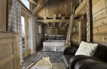 L’expérience se vit également à l’hôtel. Il partage les valeurs du restaurant : authenticité et raffinement.  Il recèle un patrimoine d’exception, véritable témoignage de l’artisanat d’art en Savoie du 17ème siècle à nos jours. La Bouitte offre 16 Chambres et suites rustiques dédiées à Anaïs, Emilie, Aurélie, Angéline et Laura, ont fait des petits. Et même des grandes… avec sept suites de grand charme. Spacieuses et chaleureuses, elles sont amoureusement aménagées et rivalisent de caractère. Tous les services d’un hôtel de grand confort y sont proposés. A commencer par de délicieux petits déjeuners. Mais la chaleur et la personnalisation de l’accueil sont plutôt dignes des meilleures chambres d’hôtes. Pour la décoration et le mobilier, René et Maxime Meilleur fusionnent avec bonheur l’identité savoyarde typique (art populaire raffiné, patrimoine baroque…), et une touche plus design. La suite panoramique « Marie », sur 75m², bénéficie de 3 expositions, d’une belle charpente bois, d’un salon cosy avec cheminée, et d’une superbe salle de bains avec baignoire jacuzzi balnéothérapie et douche.