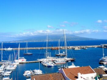 Chacune des îles des Açores possède une identité fascinante, Faial n’échappe pas à la règle… Découverte par les marins d’Henri le Navigateur vers 1450, l’île prit ce nom de en raison des hêtres (Faia) qui couvraient les pentes de la caldeira. Faial est surnommée l’île bleue en raison de la forte présence de haies d’hortensias déclinant toutes les nuances de bleu dont elle est revêtue. Comme ailleurs aux Açores, l’île s’est développée grâce à la culture du blé et du pastel destiné aux centres textiles des Flandres malgré la terrible éruption volcanique de 1672 au Cabeço do Fogo et les attaques de corsaires et pirates. Plus que les autres îles, elle est une escale mythique. En effet, le port d’Horta accueille tous les navigateurs traversant l’Atlantique. Skippers des courses au large ou de charters, plaisanciers ou équipiers venus tenter l’expérience d’une traversée, ont tous béni l’escale d’Horta et… ont laissé leur trace sous la forme d’une peinture murale. La position stratégique de Faial sur les routes commerciales de l’Atlantique, de tous temps, favorise l’essor d’Horta. Il fut un port d’exportation du vin et de l’eau de vie et des oranges des îles de Pico, São Jorge et Graciosa.