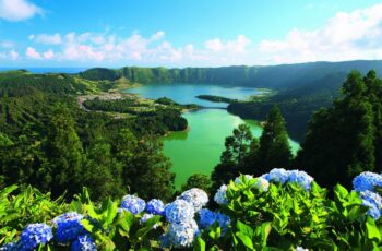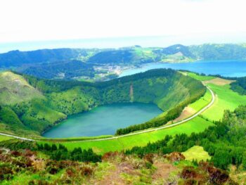 La merveille de San Miguel reste incontestablement Sete Cidades. Imaginez un cratère volcanique de 12 km de circonférence à découvrir depuis son sommet au belvédère de la Vista do Rei. De là, on observe tout en bas, les eaux tranquilles et transparentes de son lac vert et de son lac bleu. Un sentier fait d’ailleurs le tour du cratère empruntant des dénivelés plongeants et parois abruptes. Ces paysages sauvages restent méconnus et contrastent avec la vie protégée des petits villages de l’île.