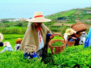 Sur San Miguel subsistent encore les seules plantations de thé d’Europe… En effet, dans notre imaginaire, le thé évoque de lointaines routes d’explorateurs. Les premiers plants de thé venus de Chine auraient été introduits sur l’archipel, puis croisés avec une variété en provenance d’Inde au 19e siècle. Ici, les conditions géo-climatiques favorisent le développement des pieds de Camellia sinensis. L’arbuste apprécie les sols acides de la terre volcanique. Résultat, on déguste un thé léger en théine et en tanins.