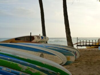 Lors de votre séjour à Oahu, vous passerez immanquablement par Honolulu et la célèbre plage de sable fin de Waikiki, s’étendant sur près de 2 km, toute bordée de cocotiers. Son nom seul suffit à faire rêver. Mais elle fréquentée chaque année par 5 millions de touristes. Le terme hawaiien « waikiki » signifie « eaux jaillissantes » … Même si la plage est magnifique, on est bien loin d’une étendue de sable sauvage, avec cette rangée de tours design qui bordent le front de mer ! Ici, le surf est un véritable sport national. Né à Hawaii et pratiqué dès le XVe siècle par la plupart des locaux, il sera décrié par les missionnaires, au XIXe siècle, qui trouveront la quasi-nudité des surfeurs indécente. Au début du 20e siècle, Duke Kahanamoku, nageur et surfeur hors pair, va réhabiliter ce sport. Après avoir remporté plusieurs médailles aux Jeux olympiques de Stockholm, en 1912, il exporte le « surf spirit » en Australie, où il rencontre un succès immédiat. Il gagne ensuite les États-Unis dans les années 1960. Auréolé de ses victoires, Duke est devenu une vraie icône pour tous les passionnés de surf à travers le monde.