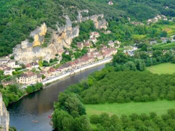 Des sites préhistoriques aux châteaux Renaissance en passant par les forteresses, les villages et les abris troglodytes médiévaux, le patrimoine de la Vallée de la Dordogne est d’une extraordinaire richesse. Particulièrement, le Périgord Noir qui se distingue par des paysages uniques et une incroyable concentration de sites préservés. Le Périgord noir, c’est sans doute la plus ancienne des appellations qui existait avant même le département de la Dordogne. La couleur noire fait référence aux chênes verts très sombres qui sont très présents dans cette partie de la Dordogne et qui donnent au paysage une belle couleur. Le Périgord noir s’étend sur le sud-est du Département. Il est connu pour Sarlat-la-Canédat, Les Eyzies, Montignac ou Domme. Réputée l’une des plus belles d’Europe, la rivière Dordogne est reconnue Réserve Mondiale de Biosphère par l’UNESCO. Ces vallées protégées sont le fil conducteur, le dénominateur commun entre nos ancêtres artistes de la préhistoire, les hommes de Cro-Magnon, les châteaux des seigneurs féodaux, puis le réseau de bastides des rois de France et d’Angleterre qui rivalisèrent sans cesse dans la région pendant près de 700 ans.