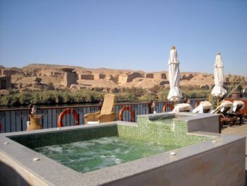 Grâce au faible tirant d’eau de la dahabiya, vous accostez à proximité des sites les plus prestigieux, loin des foules… On s’amarre dans des endroits paisibles au charme incomparable. En plus des lieux incontournables, lors des escales, on visite des villages authentiques et la campagne de la Haute Egypte ainsi que des endroits d’un accès plus difficile, bien moins courus et tout aussi dignes d’intérêt. Loin des bateaux de croisière habituels, la dahabiya se rapproche bien plus d’un yacht privé d’une excellente stabilité. Avec la Dahabiya Rois, on entre dans l’univers d’un petit palace flottant. Huit cabines de 21 m2 et deux de 18 m2 présentent un confort haut de gamme avec baies vitrées laissant voir sa majesté le Nil et ses rives pittoresques. Pour se relaxer, on se rend sur le pont soleil où sont disposés des transats, des espaces ombrés, un jacuzzi, un hammam…