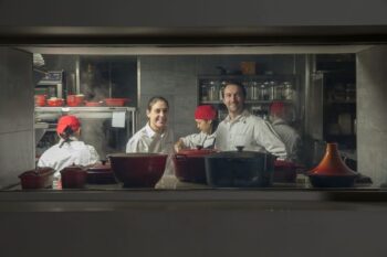 De la vieille ferme basque du XVIIe siècle, juchée sur une colline face à la Rhune, première marche des Pyrénées, il reste toute l’authenticité d’époque dans la partie consacrée à l’hôtellerie à laquelle on accède depuis la façade noble. On est accueillis par une équipe jeune et dynamique des plus charmantes. La maison s’attache à marier le traditionnel et le moderne, comme l’a voulu Cédric Béchade en réinventant les lieux de façon contemporaine tout en conservant l’âme de cet ancien corps de ferme du XVIIe siècle.