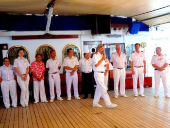 Le soir venu, des amis se réunissent autour du piano et entonnent quelques-uns de leurs airs préférés. Au Bar Tropical, le barman s’affaire à concocter un délicieux cocktail rafraîchissant. Quoi de plus relaxant ? A bord des artistes apportent aux passagers un aperçu authentique de la musique et des arts locaux. Ici, les voyageurs vont et viennent, libres de participer aux excursions ou de rester à bord pour se relaxer au bord de l’une des deux piscines du bateau. Après une journée bien remplie en escale, certains passagers optent pour un moment de détente… des masseuses thaïes dispensent des soins sur le pont. En fait, l’équipage pourrait poser pour Benetton : il est totalement international avec des philippins, des allemands, des espagnols… des chanteurs hongrois font le spectacle le soir… A bord du Star Flyer, tout reflète la chaleur et l’enthousiasme des officiers et de l’équipage. Que vous choisissiez de partir pour une mini semaine ou plus, vivez une croisière pas comme les autres soit en Méditerranée, aux Caraïbes, en Asie et parfois en Polynésie Française.