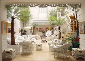 The Peninsula connu et reconnu à Bangkok bénéficie d’une superbe vue sur le Chao Phraya. Premier hôtel installé sur l’autre rive du fleuve, il s’est rapidement imposé comme le standard de l’excellence hôtelière dans une ville. L’idée géniale était d’être en face des autres. On a ainsi vue sur le vieux Bangkok et ses dernières maisons coloniales. Pour traverser, un service perpétuel de navettes donne un petit goût de Venise exotique. On ne décrit pas The Peninsula : on le vit. Une grande fontaine centrale extérieure se reflète dans les portes vitrées du hall d’entrée. Une fois à l’intérieur, on découvre un comptoir discret faisant office de réception. La décoration est très élégante, ornée de fleurs fraîches installées un peu partout dans l’hôtel. L’ambiance est très cosy : présence de meubles en bois précieux, marbre, grands miroirs, beaux tableaux et objets d’art. Avec ses 37 étages, l’établissement compte 370 chambres dont 60 suites. La décoration de celles-ci est classique mais très élégante. Elle décline différents tons de beige et gris clair, disposent de salles de bains somptueuse toute en marbre avec une belle vue panoramique sur le fleuve. On n’imagine pas tout ce qui passe sur un fleuve de jour comme de nuit. Petite originalité de l’endroit : un sas a été prévu pour les chaussures devant être cirées. Il communique avec l’extérieur, donc vous ne serez pas dérangé et vous les retrouverez au même endroit.