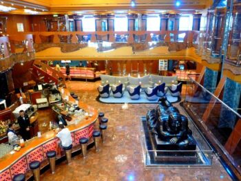 Quel bonheur d’embarquer sous le soleil à Venise pour débuter sa croisière à bord du Costa Luminosa. D’emblée, ce paquebot se distingue par son design sobre et convivial des salles communes. Le croisiériste est salué, à son arrivée, par la monumentale sculpture « Femme allongée 2004 » de Fernando Botero brillant sous les rayons de soleil qui traversent la verrière de l’imposant atrium. Quelques chiffres, le navire compte 1 504 cabines dont 91 au sein de l’espace bien-être, 521 avec balcon privé et 58 Suites avec balcon privé sans oublier 12 Suites au sein de l’espace bien-être. Les architectes d’intérieur ont particulièrement recherché le confort en dessinant des cabines spacieuses douche.