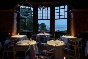 Le château abrite le restaurant “Le Coquillage” dont les deux salles à manger font face au spectacle de la mer. On y déguste une cuisine naturelle et sincère préparée à base de produits de la baie de Cancale par Hugo Roellinger – deux étoiles au guide Michelin. Avant de diriger les fourneaux, le jeune chef avait annoncé à son père, en 2012, son intention de cuisiner, après avoir sillonné presque toutes les mers de la planète en tant qu’officier de marine marchande. Si Olivier Roellinger a quitté depuis 2009, les fourneaux, son fils travaille une cuisine marine, potagère et épicée. La carte est inspirée par le potager celtique où poussent, entre des pierres levées, 70 variétés de plantes aromatiques. Hugo Roellinger indique : « j’ai une chance incroyable de vivre au pays de Cancale, face à ce paysage changeant, lunaire, et cette respiration céleste des marées ». Le jeune Chef revendique une assiette plus maritime davantage végétale et iodée que son père. Pas de doute, au restaurant Le Coquillage, on goûte au bonheur devant l’immensité de la Baie où ciel, terre et mer se fondent devant l’Archange Saint Michel !