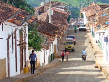 A deux pas de la ville de San Gil, connue pour être la capitale des sports d’aventure en Colombie, perché sur une falaise -dominant la vallée du fleuve Suarez- , le paisible village de Baricharara est considéré comme l’un des plus beaux du pays. Avec ses rues en grosses pierres et sa vieille église, ses maisons peintes en blanc, ses toits, ses briques orangées et ses portes de couleur verte foncée… Barichara, est appréciée pour son calme et sa sérénité.