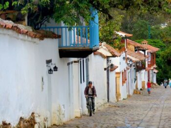 Classée monument national en 1954, Villa de Leyva avec ses villas coloniales blanches, – leurs fenêtres et portes en bois massif- , ses ruelles étroites… s’attache à préserver son patrimoine architectural. Les rues pavées semblent la projeter des siècles en arrière. On admire l’éclatante Plaza Mayor – la plus grande de la Colombie – et divers édifices typiques de l’époque espagnole du XVIe siècle. On observe également de beaux balcons d’influence mauresque. On trouve beaucoup de restaurants et d’échoppes à vocation touristique. Pas étonnant, Villa de Leyva est un lieu de villégiature très fréquenté par les colombiens chaque week-end. Il faut dire que le climat est ici beaucoup plus doux qu’à Bogota. On tombe sous le charme !