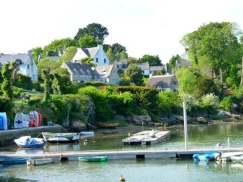 A deux pas, rendez-vous à Névez désignée comme faisant partie du Pays des Pierres debout. Si vous y prêtez attention, admirez les pierres debout – de grands blocs de granit taillés dans un format assez haut- au hasard de vos balades. Névez affiche également de jolis hameaux de chaumières. Il s’agit en réalité de lieux-dits Kerascoët et Kercanic, où se trouvent plusieurs chaumières traditionnelles bretonnes, de petites maisons en granit dont le toit est en chaume (paille de seigle ou roseau). Poussez votre promenade jusqu’au ravissant Port de Kerdruc situé sur l’Aven pour regarder la vue sur les bateaux, et Port-Manec’h, située à l’embouchure de la rivière Aven. C’est un peu la partie huppée de Névez, avec ses belles résidences secondaires. Le charme de la petite plage de Port Manec’h, à Nevez, est unique. Un lieu incontournable si vous voulez vous initier à la voile. En fin de journée, allez boire un verre à la terrasse de La Châtaigneraie. Pas de doute, cette station balnéaire fut prisée au début du 20 ème siècle. Elle conservé de sa « Belle Époque » un alignement de cabines de bain peintes en blanc.