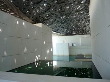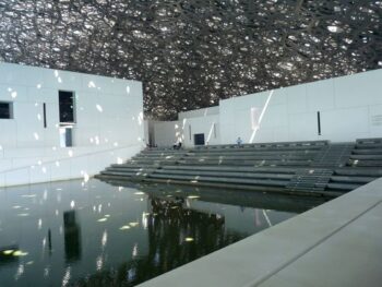 Le Louvre Abu Dhabi, a ouvert ses portes en 2017. Il se présente comme un musée « universel ». Dans beaucoup de musées classiques, les œuvres sont regroupées en collections en fonction de leur époque ou de leur origine géographique. Au Louvre Abu Dhabi, les collections sont plutôt organisées pour rendre hommage à l’histoire de l’art dans toutes les civilisations humaines. Indépendamment de leur provenance, les œuvres sont regroupées en fonction de ce qui les rapproche.