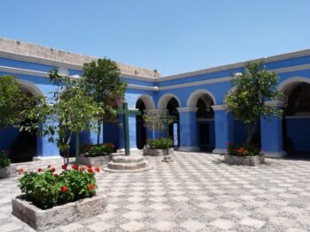 Revenons à notre itinéraire… vient, une escale à Matarani (Pérou), petit port de pêche isolé entre désert et montagne qui permet de se rendre en moins de 3 heures à Aréquipa. Isolée entre désert et montagne, à plus de 1.000 km au sud de Lima, Arequipa, ville coloniale fondée en 1540, la deuxième agglomération urbaine du Pérou, est une cité opulente et le plus important centre intellectuel du pays. Ses maisons de pierres volcaniques d’un blanc étincelant sous des cieux ensoleillés presque toute l’année, lui ont valu le surnom de “ville blanche”. Arequipa est située au coeur d’une oasis verdoyante et dominée par un groupe de volcans, dont le Misti (5.821m) et le Chachani (6.075m), le plus élevé de tous. La région fut d’abord colonisée par les Aymarà, puis les Quechuas, enfin les Incas s’y installèrent. Cependant, la ville actuelle fut fondée par les Espagnols en 1540. Longtemps isolée du reste du pays, Arequipa a conservé intact son cachet colonial : belles demeures patriciennes aux frontonx sculptéx et aux fenêtres décorées de fer forgé, nombreuses églises et couvents. Le couvent de Santa Catalina fondé en 1580 est sans doute le monument le plus étonnant et le plus intéressant d’Arequipa. Ouvert au public, après avoir abrité pendant quatre siècles une communauté de carmélites issues de riches familles espagnoles de la région, Santa Catalina est “une ville dans la ville”. En y pénétrant on se retrouve en plein 16éme siècle… patios, cloîtres, maisons particulières, bâtiment monastiques, séparés par de véritables rues… se présentent à nous. A l’arrivée du paquebot à San Juan Marcona, les passagers du Diamant se rendent à Nazca… pour survolez les fameuses lignes de Nazca, toujours, énigmatiques et mystérieuses. S’agit-il d’un calendrier astronomique ou d’un sentier rituel dédié aux dieux ? La question se pose encore. La prochaine escale, Callao, le port de Lima est très attendue de tous.