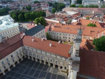 Centre politique du grand-duché de Lituanie du 13e siècle jusqu’à la fin du 18e siècle, Vilnius, fondée par le Grand-duc Gediminas, a exercé une profonde influence sur le développement culturel et architectural d’une grande partie de l’Europe orientale. Vilnius, bien que relativement méconnue, recèle un trésor incomparable : son centre historique, entièrement classé au Patrimoine mondial par l’Unesco. Les vestiges les plus anciens sont les murailles des remparts. Le Moyen âge est encore très présent à Vilnius, notamment par les petits îlots d’habitations divisés par des ruelles, formant un large éventail autour du château. Malgré les invasions et destructions, son centre a conservé un ensemble imposant de bâtiments historiques de styles gothique, Renaissance, baroque et classique. Les façades sont souvent colorées et largement sculptées ; ce qui donne à la vieille ville un charme certain. Depuis quelques années, la cité se met à l’heure du capitalisme et les buildings de verre et d’acier sortent de terre de ça et là.