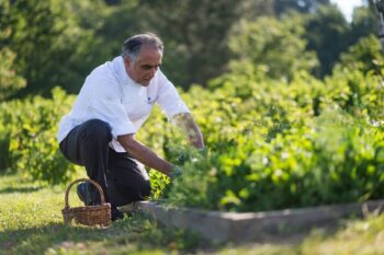 L’éloge de la ruralité se poursuit dans l’assiette au restaurant Les jardins Sauvages. Le chef, Gilles Le Gallès concocte au fil des saisons une carte et des menus gastronomiques, entièrement bio et locavores. Il met à l’honneur les végétaux et les légumes. Le toqué breton sélectionne sa palette gourmande dans un rayon de moins de 50 kilomètres, auprès de producteurs qui partagent sa démarche. Le restaurant est d’ailleurs l’un des seuls en France à être certifié bio à 100 % (depuis 2013). Une belle prouesse ! La carte du restaurant propose notamment des plats végétaliens. Pour les adeptes de protéines animales, poissons à la fraîcheur saisissante et viandes tracées, sont aussi proposées. Enfin, tous les desserts sont réalisés avec le moins de sucre possible.