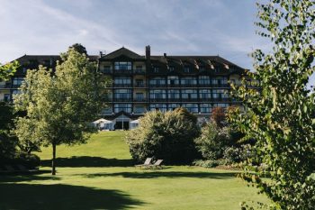 L’Evian Resort bénéficie d’une situation exceptionnelle. Il est lové dans un parc de 19 hectares surplombant le lac Léman. On y trouve deux bijoux hôteliers. : l’Hôtel Royal***** Palace construit en 1909 à l’atmopshère élégante et raffinée et le cosy Hôtel Ermitage****. L’Hôtel Ermitage est une réalisation de l’architecte-paysagiste Henri Martinet (qui a dessiné les jardins de Shinjuku Gyoen à Tokyo). Une clientèle huppée se presse dès son ouverture 1909, jusque dans les années 30. En 1950, l’hôtel est transformé en hôpital avant de devenir un centre rénal en 1967. En 1991, il devient la propriété de la société des Eaux Minérales d’Evian. Une longue restauration lui permet de redevenir un hôtel. La bâtisse affiche une architecture de style anglo-normand ; elle abrite 80 chambres et suites familiales au design élégant. Au restaurant La Table, on se régale autour du menu du marché renouvelé chaque jour.