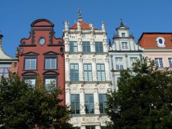 Gdansk affiche fièrement les vestiges de son passé glorieux -certes fidèlement reconstitué- lorsque les lourds bateaux commerçaient avec l’est, le nord et l’ouest de l’Europe. De la porte Haute à la porte Verte, sur quelques centaines de mètres seulement, de la rue Longue à la rue du Long-Marché -l’ancienne Voie Royale- s’alignent les plus belles demeures de la ville. Propriétés des riches commerçants de l’Alliance Hanséatique, elles affichent des façades colorées, baroques, soigneusement entretenues. Une foule joyeuse et curieuse déambule, en mitraillant les maisons les plus remarquables. Ne manquez pas le petit bijou de la Cour Artus, la fontaine de Neptune où le Dieu de la mer, star de la ville, est immortalisé sous toutes ses coutures.