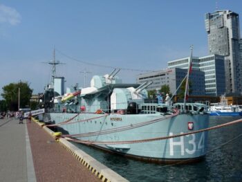 Un long bâtiment construit en 1933 s’avance en front de mer. C’est le terminal d’embarquement et ces vastes salles, où des milliers d’émigrés attendaient pleins d’angoisse et d’espoir. Là accostaient les navires en partance pour l’Europe et les transatlantiques vers les Amériques. Il paraît normal qu’aujourd’hui le Musée de l’Emigration y ait élu domicile, en hommage aux 12 millions de polonais qui ont dû quitter leur pays. Beaucoup partaient pour les Etats-Unis et principalement à Chicago. Ville édifiée dans les années 20 et 30 du XXe s. afin de devenir le port et le centre de constructions navales de la Pologne redevenue indépendante en 1918. Gdynia, c’est la capitale de la voile de la Pologne, les plus grands voiliers du monde y font escale. Réalisez une balade sur boulevard du Front de Mer, empruntez le funiculaire pour atteindre le sommet de « Kamienna Gora ». Le panorama sur le port est éblouissant.