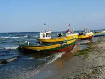 Gdynia était un petit village de pêcheurs avant la création d’un port dans les années 1920. Se développent alors des activités maritimes plutôt traditionnelles comme l’exportation de charbon, de bois vers les pays nordiques. Au début du 20e siècle, alors que la pauvreté sévit dans le pays, le port devient la porte de l’émigration polonaise. Aujourd’hui, il a retrouvé toute l’importance d’un grand port et c’est le second port à conteneurs de la Baltique. La ville mérite une visite, pour son architecture moderniste, inspirée de l’école allemande du Bauhaus et surtout pour son remarquable musée de l’émigration. La Pologne a connu plusieurs vagues d’émigration. En 1831, suite au soulèvement contre la domination russe, puis au début du XXème siècle, où la pauvreté propulse les familles polonaises vers l’Amérique du Sud, les Etats-Unis, Israël, le Brésil, l’Australie et aussi vers la France.