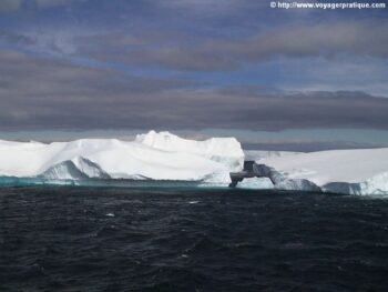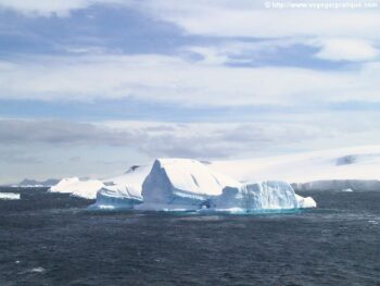 Direction la péninsule Antarctique, pour une étonnante découverte du pays de “La marche de l’Empereur” et des icebergs géants et dérivants. Une petite dépression avec un vent d’ouest dominant nous accompagne. Une houle se forme, à bord la journée est rythmée par des conférences et des temps de repos. Tandis que Nicolas Dubreuil, donne sa conférence sur les glaces d’eau douce, soudain, la passerelle, annonce la traversée d’un champ d’icebergs tabulaires. Le plus grand que nous longeons avec prudence mesure une dizaine de kilomètres et provient de la plateforme de glace de Larsen, qui borde la côte est de la péninsule Antarctique. Plus tard, le paquebot passe au large de l’île Paulet où un vent mêlé à de petites chutes de neige et au brouillard souffle en rafale à plus de 70 km/h. Le paquebot tente de se positionner pour faire un débarquement de passagers par canots pneumatiques mais la mise à l’eau de ceux-ci est périlleuse. Il faut renoncer.