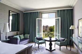 Chacun des quatre étages de chambres a été baptisé en l’honneur de personnalités mythiques de Cabourg : – Marcel Proust bien entendu – Le Colonel Jean-Baptiste Piron : Chef des Commandos Belges, qui a participé à la libération de Cabourg en 1944 – Bruno Coquatrix : Ancien Maire de la ville, connu pour avoir dirigé l’Olympia et fait venir de nombreuses personnalités à Cabourg et au Grand Hôtel – Sandrine Bonnaire : Actrice emblématique qui a un fort attachement pour la ville et le Grand Hôtel. Les chambres sont spacieuses et laisse transpirer le romantisme. Côté décoration, les tons associent chocolat, rouge grenat et bleu-vert aux déclinaisons de beiges et de blancs pour un résultat raffiné. Les grandes salles de bain offrent un réel confort aux hôtes. Elles sont dotées d’une vue sur la mer ou les jardins fleuris. Certaines chambres sont prolongées d’une terrasse ou d’un balcon permettant de se reposer ou se restaurer en toute intimité face à l’horizon.