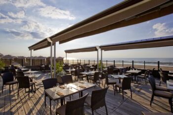 Aux beaux jours, c’est au restaurant La Plage que l’on déguste la cuisine du Chef. Les pieds dans l’eau, la table propose une carte autour des produits de la mer, procurant à ses visiteurs une parenthèse culinaire où se mêlent la douce odeur des embruns marins et le charme unique de la Normandie. Ce moment de détente peut se poursuivre sur les chaises longues mises à disposition sur la plage privée de l’hôtel. Au Grand Hôtel,chacun peut vivre une parenthèse détente, un week-end en amoureux ou un séjour de charme…