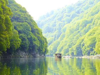 C’est à proximité de tous ces trésors que se niche au pied d’une colline, avec vue sur la rivière, l’hôtel Hoshinoya. On l’atteint, après une courte traversée en bateau le long de la rivière Ôi. Quel plaisir d’emprunter un petit bateau qui avance lentement. On s’éloigne peu à peu de l’agitation, tandis que la rivière devient plus étroite. Quelques minutes plus tard, l’hôtel Hoshinoya Kyôto vous tend la main. On y entre par un sentier bordé de mousse qui longe plusieurs fontaines… puis place à un jardin zen de pierres. La vie urbaine n’est alors plus qu’un lointain souvenir. Décrit comme un « véritable havre de paix » par ceux qui ont eu la chance d’y séjourner, l’hôtel affilié à Small Luxury Hotels of the World est une destination rêvée pour un séjour contemplatif au cœur de la poétique nature japonaise.