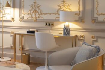 Aux cheminées marbrées d’origine, s’ajoutent des lustres royaux et miroirs monumentaux. Têtes de lit gainées de cuir, guéridons brillants, fauteuils aux coques chromées ou dorées, luminaires de la Maison Charles… l’élégance du sur-mesure et de l’artisanat français y est sacrée. Pour la touche de modernité, on compte également quelques pièces de mobilier contemporain – fauteuils Knoll et Argenta, tapis Toulemonde Bochart. Et à chaque étage une signature chromatique singulière : champagne, rose poudré, rouge royal, blanc immaculé… Les chambres et suites disposent d’une connectique adaptée aux nouveaux usages à l’image des télévisions-miroirs pilotables depuis son mobile. Confort encore avec la carte du room-service servi par les cuisines du restaurant 99 Haussmann. Outre les machines expresso en chambre, le mini-bar offre également une sélection exclusive de produits français.