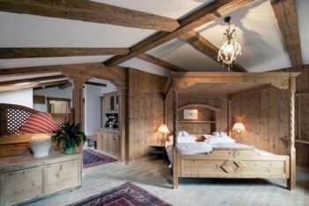 Partout, on trouve une touche de luxe et de confort. L’hôtel propose des chambres spacieuses, empreintes d’élégance et de sophistication. Chaleur, respect et savoir-vivre sont les maîtres mots. Les chambres à l’atmosphère romantique font la part belle au bleu, d’autres au rouge ou au jaune… Les chambres “Romantik” tyroliennes offrent un vaste espace salon ouvrant sur des balcons aux vues époustouflantes sur la montagne. Les espaces publics sont tout autant soignés. Des céramiques peintes à la main, des collections de tasses à bière, des chevaux à bascule sont réparties un peu partout.