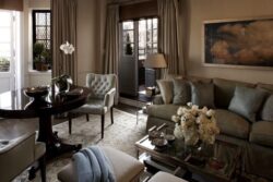 Pour les chambres et suites (respectivement au nombre de 154 et de 54) la décoration affiche d’élégantes déclinaisons de couleurs, aux ambiances pivoine, soleil et argenté, damas, broderies et soieries unies provenant de grandes maisons pour habiller les fenêtres, les fauteuils et les lits. Les « Harry Winston » , les 6 appartements nouvellement créés, offrent un charme incroyable dans leurs volumes et leur esprit, peuvent être privatisés et transformés en grands appartements avec une vue « très couture » sur l’avenue Montaigne. Au n°21 cette fois, au-dessus du Relais Plaza, les 8 nouvelles clés, parmi lesquelles deux nouvelles suites Eiffel signature, une suite Deluxe et une suite Prestige, déclinent des ambiances associant majoritairement le gris au rose ou au parme. Les suites Signature bénéficient d’une large bow window, et d’une fenêtre encadrée d’argent avec vue sur la majestueuse dame de fer. Marie-José Pommereau a également rénové un grand nombre de salles de bains. Ce travail aussi technique qu’esthétique s’est concentré en premier lieu sur l’éclairage. Lumineux et précieux, un marbre blanc veiné de gris « Calacatta » provenant de Carrare habille les murs, tandis que de nouveaux miroirs réfléchissent la lumière et font de ces salles de bains des boudoirs d’aujourd’hui
