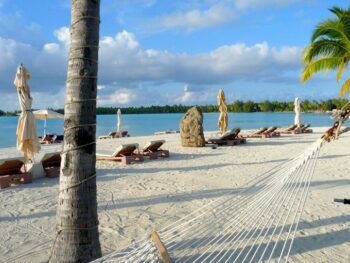 Bora Bora fait indéniablement partie des lieux les plus romantiques qu’il soit sur terre. Le Saint Regis Bora Bora Resort ouvert en 2006, s’étend de part et d’autre du motu Tofari, côté lagon et côté océan. La réception est abritée sous un bâtiment à l’architecture polynésienne, chic, épurée, décorée d’oeuvres d’art et de poteaux de bois sculptés et des tikis. Il y en a 500 dans tout le resort qui ont été conçus par des sculpteurs de Raiatea et des Marquises. Impressionnant et dépaysant, le domaine fréquenté par des célébrités internationales du cinéma, du sport, de la chanson… s’étend sur plus de 17 hectares où sont disposées plusieurs piscines rivalisant d’éclat avec les eaux cristallines du lagon. On compte la piscine oasis, resplendissante de fraîcheur, la piscine centrale doté d’un bar “pieds dans l’eau”, sans oublier le Lagoonarium, rempli de poissons exotiques et de raies. Ici, on a l’impression de vivre dans un monde à part, si on ne nage pas… on s’y promène à bicyclette ou en club-car.