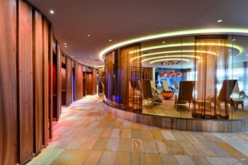 Le Trofana Royal, c’est aussi une invitation à la détente et à la relaxation au cœur d’un Spa de 2 500 m². Dans tous les espaces aux décors somptueux, de l’institut de beauté, aux saunas en passant par la piscine et le pool-bar, on se laisse emporter par la pureté des lignes du mobilier, les subtils éclairages et les matériaux naturels. Tout d’abord, la piscine intérieure est sublime mais le Spa propose aussi un parcours aquatique en plein air, autour d’une piscine au bassin rectiligne. Le tout au coeur d’un jardin de 2 000 m² à l’ambiance zen. Tout près, un grand jacuzzi à l’eau salée nous invite à buller.