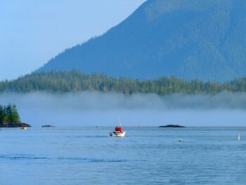 Une multitude d’îles se dissimulent le long du littoral après Tofino, cependant, il n’existe aucune route pour les découvrir. On se plaît à les explorer en hydravion, le transport local par excellence. À vol d’oiseau, Tofino semble coupé du reste du monde par les montagnes Clayoquot Sound qui s’élèvent majestueusement en arrière-plan. Aujourd’hui, le soleil brille sur la baie de Tofino. Au loin, le glacier se détache dans le ciel bleu. Difficile d’imaginer la tempête prévue pour le lendemain. C’est pourtant une autre spécialité de la région, qui attire bien des visiteurs en hiver. Ils pratiquent ce que l’on omme le Storm Watching (l’observation des tempêtes)… réservé aux amateurs de sensations fortes !