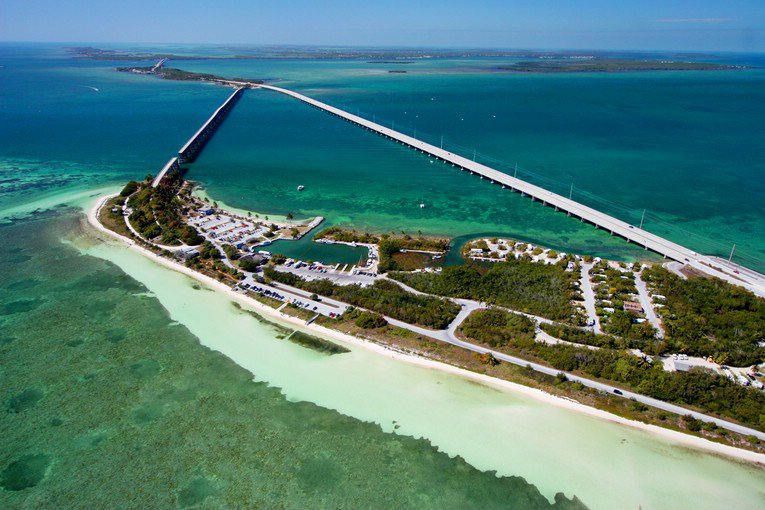 Autrefois isolées du reste de l’Amérique, les îles furent reliées au sud de la Floride par une voie ferrée construite en 1912 mais qui sera détruite par un ouragan en 1935. Elles seront de nouveau reliées au continent en 1938 par l’extension de l’autoroute US1 qui descend depuis la frontière canadienne. L’extension de la route fut réalisée sur toute la longueur de l’archipel, en traversant au total 32 îles pour relier Key West à Miami par une série de 42 ponts dont le plus long est le Seven Mile Bridge. Cette autoroute surnommée, Overseas Highway, est considérée par les spécialistes d’ouvrages d’art comme une véritable prouesse d’ingénierie. Le climat subtropical et l’extraordinaire beauté de l’Atlantique à cet endroit font des Keys, une destination de prédilection des marins. Il est toute de même conseillé d’éviter de s’y rendre à la saison des ouragans -entre la fin de l’été et le début de l’automne.