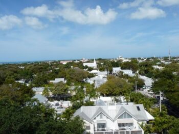 Culminant à moins de 6 mètres d’altitude, l’île de Key West ressemble presque à un atoll. Le vrai peuplement de Key West a commencé dans les années 60. L’extrémisme géographique de l’île a attiré les adeptes des libertés extrêmes et des climats doux. Les personnages les plus extravagants ont été rapidement séduits. L’ambiance trépidante de cette ancienne et charmante ville la plus méridionale des États-Unis attire depuis quelques décennies une communauté artistique prospère. Elle demeure une destination touristique populaire, ses bâtiments misent plutôt sur leur coté rustique aux tons pastels agrémentés de porches rafraîchis par les brises marines. Les édifices ne dépassent guerre les trois étages.