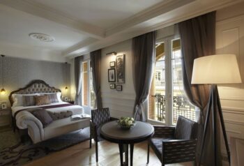 Le superbe immeuble datant de 1908, présente une façade typique Art Nouveau en pierres de taille ornée de balcons, sculptures et colonnades. Il constitue un véritable écrin pour cette splendide résidence. L’architecture du bâtiment se prête donc à merveille pour abriter chaque suite et renforce ainsi l’impression de “boutique résidence”. La résidence s’adresse, bien entendu, à une clientèle exigeante et désireuse d’un confort particulier. Une alternative intéressante qui nous a séduit de par la qualité du service et le raffinement du lieu. La Clef Louvre Paris propose 51 suites sur 7 étages dessinées dans un esprit “cocooning”, alliance de l’intimité et du confort. De la Première Suite à la Royale Suite, chacune bénéficie d’équipements haut de gamme. Les Exclusive Suites et les Royales Suites disposent d’un balcon avec vue sur la Comédie Française ou le Musée du Louvre. Chacune présente un mobilier luxueux, des matériaux précieux, des objets de décoration choisis avec soin. On se retrouve ainsi dans une atmosphère de sérénité et de prestige dans chacun des appartements.