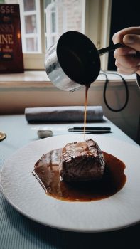 Ici, les recettes bourgeoises traditionnelles prennent une nouvelle dimension (poireaux vinaigrette, huitres gratinées, navarin d’agneau…). Chaque création culinaire allie subtilement patrimoine et innovation. Elles offrent des saveurs originales et au cœur de chaque assiette, le respect du terroir normand est de rigueur. Fruits de mer pêchés dans la Manche, légumes issus des fermes locales, et herbes fraîches cultivées sur place subliment des créations à la fois généreuses et authentiques. On vous invite à y faire escale sans attente !