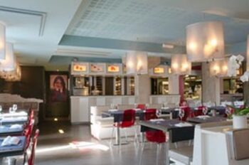Le Bistrot 7 détourne avec humour les codes de la célèbre nationale 7, route des vacances immortalisée par Charles Trénet. Le sol en béton gris rappelle le bitume de la route, partout le blanc et le rouge évoquent les bornes kilométriques jusqu’à la carte qui se déplie comme une carte routière… Anne-Sophie Pic a un peu récrée ici ce qui fut l’Auberge du Pin, la première auberge de sa grand-mère à Saint-Péray (Ardèche). Il y a du béton au sol pour rappeler l’autoroute, les serviettes sont accrochées directement à la table pour le côté baroudeur… La belle carte chante les mets de la vallée du Rhône toute proche, le tout accompagné de vins charmeurs. Au menu, on trouve La tarte fine aux blettes, citron et fève tonka, oeuf moelleux, La cuisse de volaille fermière confite, mousseline de brocolis au granola amandes et flocons d’avoine ou La daurade royale snackée à la plancha, légumes oubliés et émulsion à la feuille de tagette et en guise de douceur, Le moelleux au chocolat Guanaja ou L’île flottante marrons-noisettes… Ajoutons que le lieu est convivial et les tarifs sont très abordables. Alors, si vous passez par Valence, la halte est incontournable !