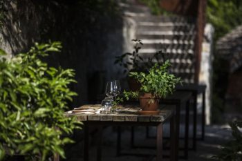 Le Clos des Sens, c’est une maison triplement étoilée qui propose une cuisine d’émotions et depuis 2021, l’établissement propose un concept de restauration estivale éphémère dédié à l’univers du jardin : Le Cortil (jardin en patois Savoyard).