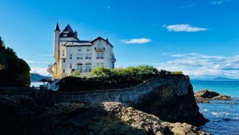 Choisie par les têtes couronnées dans les années 1800, Biarritz est par excellence la ville balnéaire chic de la côte basque. Le casino bel édifice art déco, l’hôtel du palais, construit par Napoléon III pour l’impératrice Eugénie ou encore l’hôtel Le Mercure, également art déco créent un décor luxueux. Sur son éperon rocheux, la Villa Belza où eut lieu de fabuleuses fêtes est l’emblématique édifice de la ville. Pour autant, il règne une bonne ambiance conviviale particulièrement aux abords de la halle du marché, dans les restaurants alentours et dans les rues commerçantes où faire le plein de produits régionaux, le jambon, les piments d’Espelette, les fromages de brebis au lait cru, les gâteaux basques, les mouchous, les macarons et le chocolat. A pied ou à vélo, le front de mer offre une belle diversité de sites naturels : de la pointe Saint-Martin où culmine le phare à 73 m d’où la vue sur Biarritz est magnifique, en longeant la Plage de la Côte des Basques, où est né le surf,