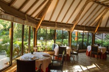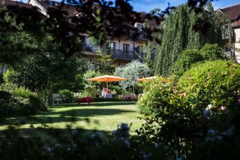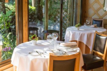 La noblesse de l’architecture, la beauté des matériaux et la décoration ponctuée d’éléments contemporains restituent le charme de la Bourgogne, avec une pointe de modernité très réussie. Les chambres et les suites allient également la pierre, les tomettes de Bourgogne et les boiseries anciennes. Certaines sont agrémentées de cheminées, de terrasses ou de balcons donnant sur le parc-jardin. Un superbe ascenseur panoramique contemporain en inox miroir a été installé au cœur d’un grand escalier de chêne, qui est une pièce maîtresse totalement chevillée à l’ancienne, permettant de desservir tous les étages de l’hôtel tout en surplombant le jardin. Les salons du restaurant allient également le charme des belles pierres de Bourgogne à une jolie touche contemporaine : de grandes tentures framboise et des voilages argentés sur lesquels ruisselle une lumière très douce, des canapés et fauteuils en cuir noir, rendent à l’espace son charme élégant. Avec une superbe vue panoramique sur le jardin, le restaurant se compose de trois salles à manger. Les grandes baies vitrées offrent l’impression de déjeuner directement dans le parc. Dès que le temps le permet, l’apéritif est servi dans le jardin où une grande terrasse permet de profiter des rayons du soleil ou de se blottir à l’ombre du hêtre pleureur ou du poirier argenté, en écoutant les clapotis des fontaines et le chant des oiseaux. En outre, à la belle saison, une restauration plus simple et rapide est également servie sur la terrasse-piscine pour les clients de l’hôtel qui ont envie de déjeuner en toute décontraction.