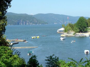 Revenons au fameux lac Champlain. Avec ses couleurs étincelantes, ses torrents…, ce lac qui s’étend sur pas moins de 1270 km² (long de 200 km) et comptant plus de 70 îles a le pouvoir de nous apaiser. Sa biodiversité est riche et avec plus de 80 espèces de poissons. C’est ainsi un lieu très prisé des pêcheurs ; les amateurs de sensations fortes pratiquent la plongée pour observer cinq sites historiques contenant des bateaux échoués au fond de l’eau. Non loin, rendez-vous au Basin Harbor Club à Vergennes pour une belle pause farniente ou sportive. On apprécie son hôtel de charme posé sur les rives du lac Champlain, son golf et son Musée Maritime. Ce musée témoigne du rôle important qu’à joué le lac Champlain dans l’histoire grâce à sa localisation au cœur d’un réseau hydrographique. On comprend pourquoi ce lac nommé par Samuel de Champlain -l’a décrit comme “… un lac rempli de belles îles…”. Ce lac a également facilité les contacts et les échanges entres les habitants du Québec et ceux des états américains du Vermont et de New York. Le musée maritime montre des photos de goélettes particulièrement intéressantes (site web : www.lcmm.org).