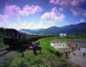 Le logement à bord de l’Eastern & Oriental Express se décline en trois types de wagons : Suite Présidentielle, voitures lits dits “State Compartments”, voitures-lits Pullman. Toutes les cabines climatisées possèdent une salle bain attenante avec douche, w.c. et lavabo. Un steward veille au bien-être des hôtes jour et nuit. Il répond à tous les souhaits, sert le petit-déjeuner composé de viennoiseries, thés, jus de fruits frais… sur un magnifique plateau d’argent. Puis, chaque après-midi, il apporte thé et pâtisseries dans la plus grande tradition anglaise du “High tea”. Le tumulte de Bangkok semble déjà loin… on se trouve plongé dans la luxuriante végétation tropicale. Cocotiers et palmiers à huile bordent la voie ferrée. Comme au temps de l’Empire Britannique, on vit au coeur d’un voyage nostalgique et princier à travers la jungle et les rizières du Sud-Est asiatique.