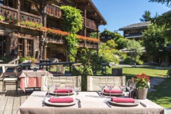 Quoi de plu sympathique de se retrouver au moment du dîner en terrasse pour déguster la cuisine gastronomique inspirée des traditions alpestres. Le chef Lionel Arnoux, venu de la Villa Marie à Ramatuelle anime cette table au un cadre rustique chic, tout en bois, avec son haut plafond. Situé au coeur du chalet principal, le restaurant sert des mets authentiques et raffinés à la carte, comme le Suprême de poulet fermier rôti, sauce crème truffée et gratin savoyard au beaufort, la Féra argentée plein beurre de fruitière, ou encore les traditionnelles Coquillettes aux truffes et jambon du Sauget… sans oublier l’incontournable buffet de desserts ! Le terroir est sublimé chaque jour.