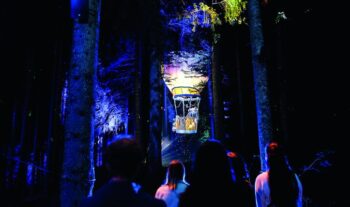 La société d’évènementiel Moment Factory a conçu un spectacle nocturne immersif et interactif. Plus qu’un simple divertissement, c’est aussi un moyen supplémentaire pour la station de sports d’hiver de sortir du « tout ski ». On connaissait, les spectacles sons et lumière métamorphosant les cathédrales et autres œuvres d’art… aux Gets, on profite d’un show sur un nouveau terrain de jeu : la nature. Depuis juillet 2020, le village alpin a lancé Alta Lumina, un parcours nocturne enchanté dans la forêt. Et le résultat de cette immersion poétique et interactive est plutôt très réussi. Le concept a été pensé pour fonctionner toute l’année. Le studio franco-canadien multimédia spécialisé dans la conception et la production d’environnements immersifs Moment Factory, a crée un show qui utilise le numérique pour créer des expériences mémorables. L’œuvre a été réalisée sur mesure en s’inspirant de la culture et des histoires locales des Gets. Alors, les visiteurs sont invités à partir sur les traces d’un colporteur de musique et de sa montgolfière et à suivre son voyage au-delà des montagnes. Si les Gets se présentent comme la première station de ski en Europe à proposer un tel concept, Moment Factory a déjà déployé d’autres œuvres en France avec notamment Oceana Lumina à Rochefort. Informations : www.altalumina.com