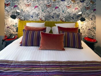 Cet un hôtel intimiste, à taille humaine fait que l’on se retrouve dans une atmosphère feutrée et cosy. La présence du bois brun réchauffe les pièces, des lustres à pampilles et des miroirs font jouer les lumières. Véronique Droux précise : “nous valorisons l’hôtellerie indépendante, l’art de l’hôtellerie, le savoir-faire et la transmission d’une maison”.